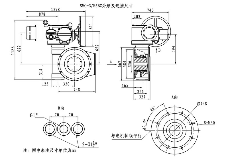 SMC/HBC系列電動(dòng)裝置是SMC系列多回轉(zhuǎn)電動(dòng)裝置與HBC蝸輪減速器的組合型式,它適合球閥、蝶閥等部分回轉(zhuǎn)閥門的驅(qū)動(dòng)控制。SMC/HBC電動(dòng)裝置具有以下特點(diǎn):結(jié)構(gòu)設(shè)計(jì)堅(jiān)固可靠,產(chǎn)品規(guī)格齊全,驅(qū)動(dòng)轉(zhuǎn)矩范圍大且動(dòng)力輸出穩(wěn)定, 具有良好的自鎖性能。 HBC輸出軸結(jié)構(gòu)獨(dú)特,裝有與閥桿連接的漸開(kāi)線花鍵接頭,產(chǎn)品的安裝調(diào)試方便。