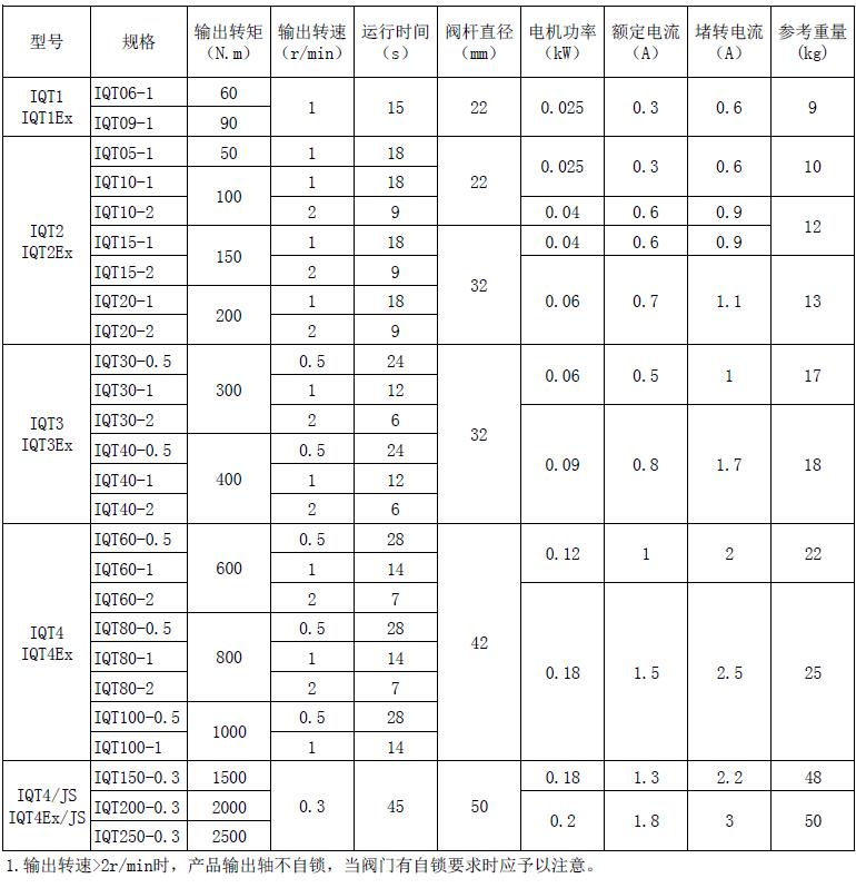 IQT1~IQT4/JS(220V單相電機)系列技術(shù)參數(shù)表